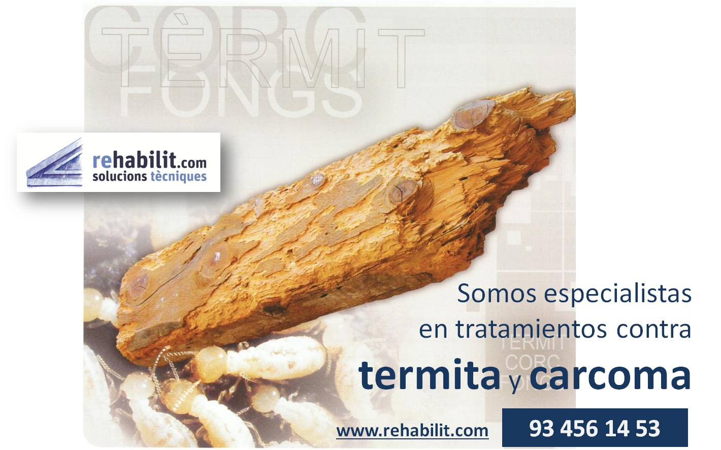 Puede visitarnos en www.rehabilit.com o llamar al 934561453. Realizamos tratamientos de la madera contra termita y carcoma en toda Catalunya.
